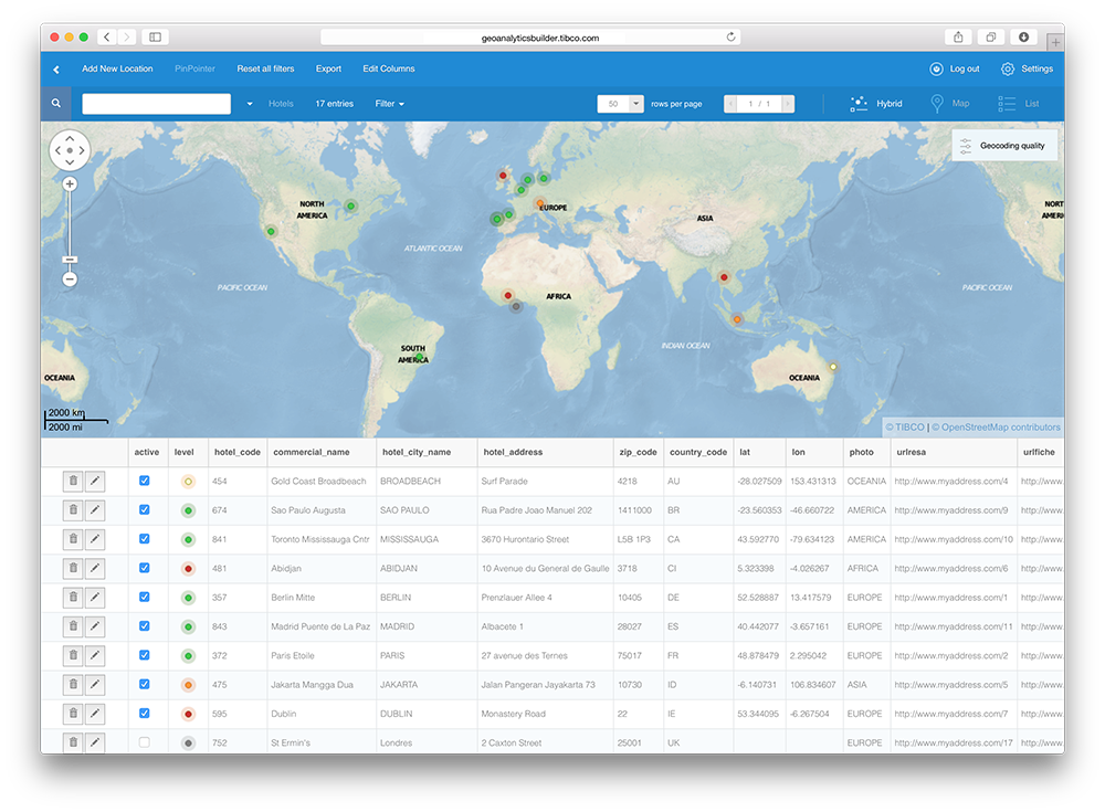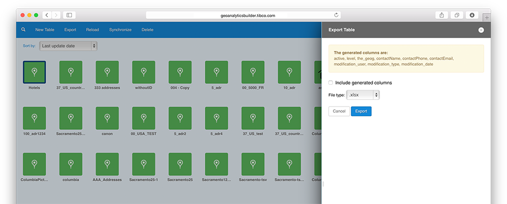 You can download your geo-referenced data as XLS, XLSX, TXT or CSV file. The can then be used in Spotfire to analyze your data in a geographic context.